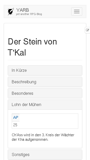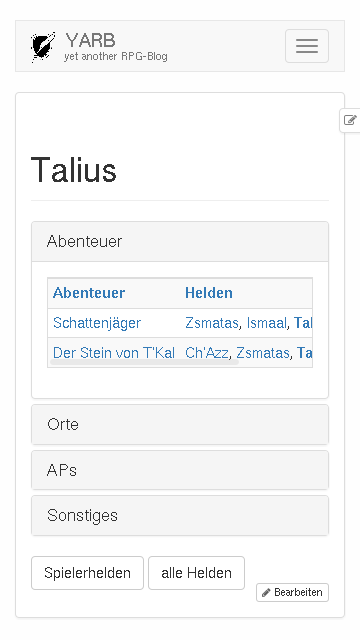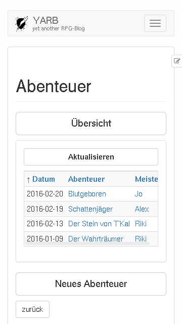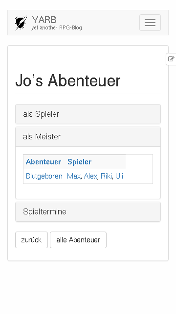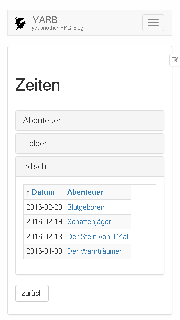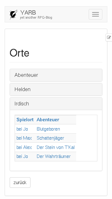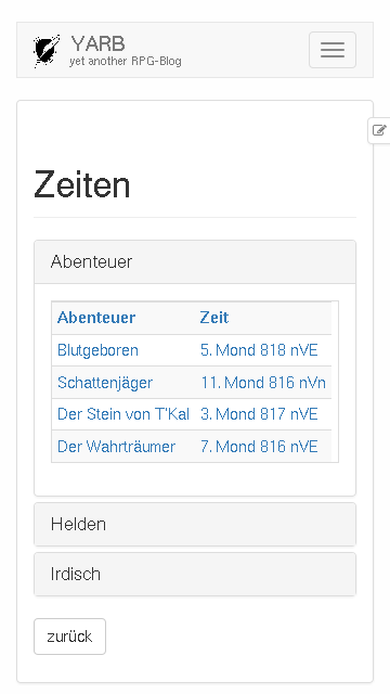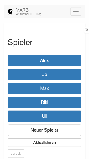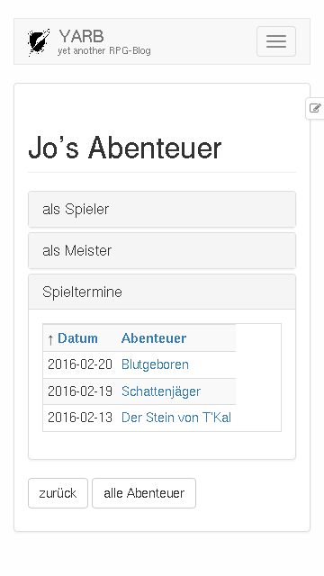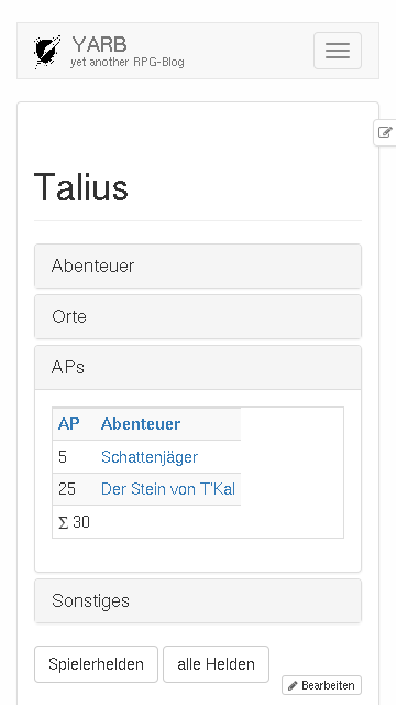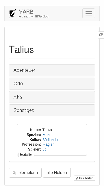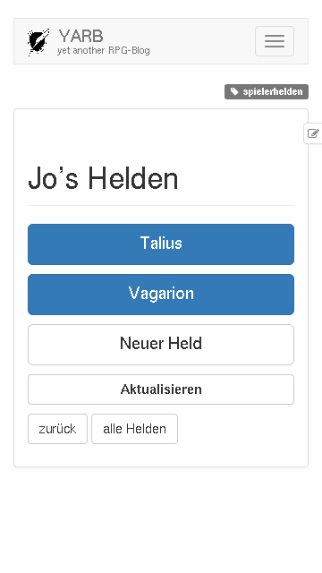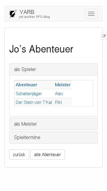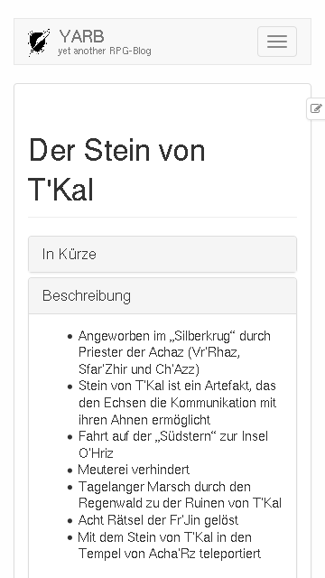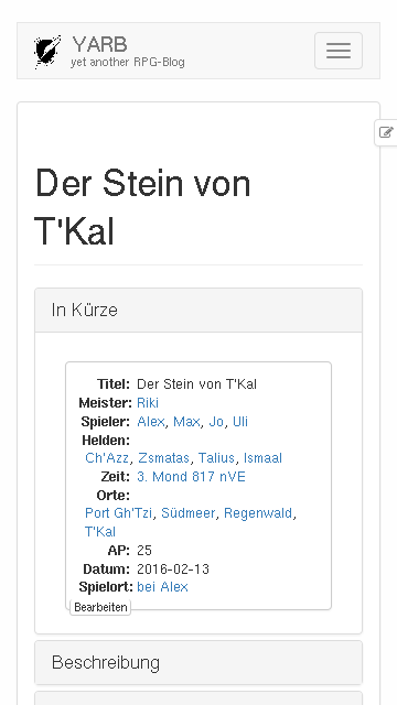 YARB ist yet another RPG-Blog, ein Hilfsmittel für eure Rollenspielgruppe, mit dem ihr festhalten könnt, was eure Helden erleben.